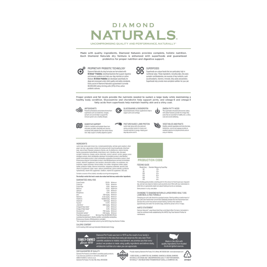 Alimento Diamond Naturals Adulto Cordero Y Arroz Raza Grande
